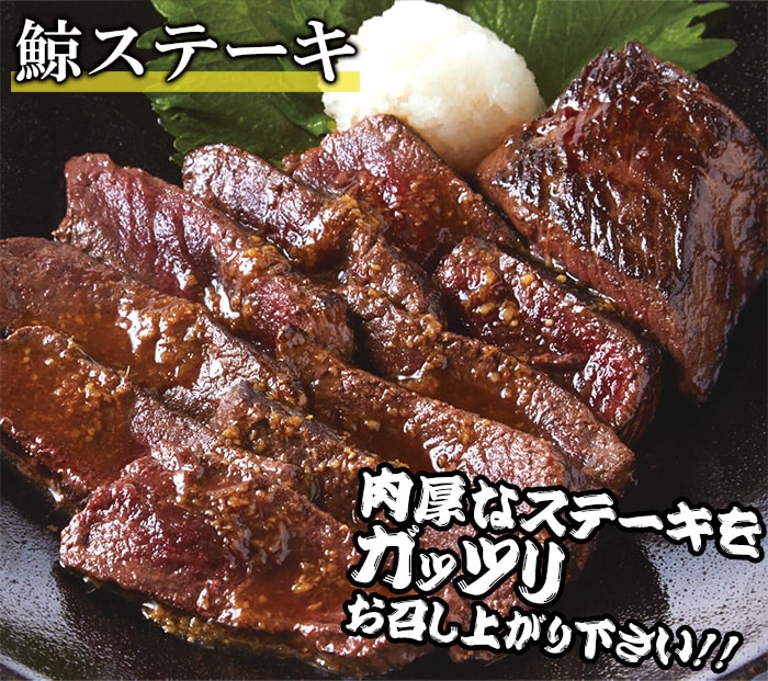 ○鯨ステーキ…肉厚なステーキをガッツリお召し上がりください!!