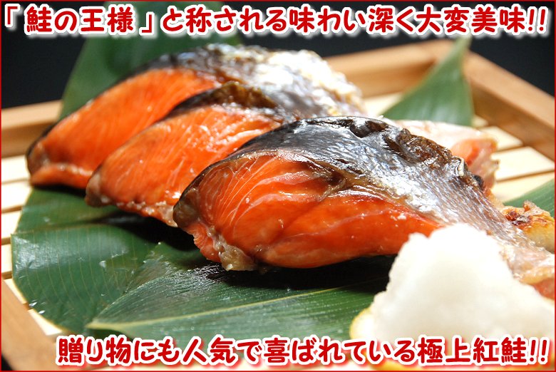 鮭のなかでも一番赤く、赤ければ赤いほど美味しいと言われています。