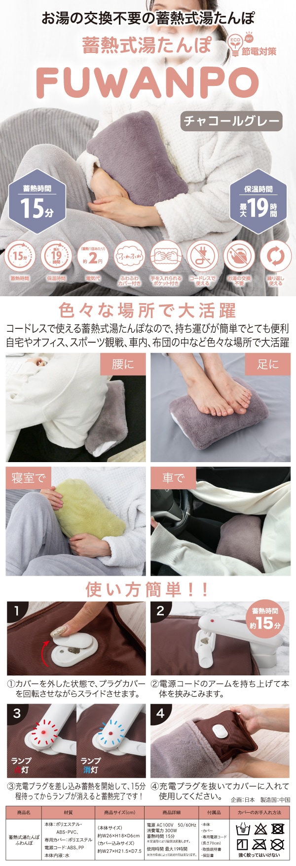 - 【チャコールグレー】蓄熱式湯たんぽふわんぽ