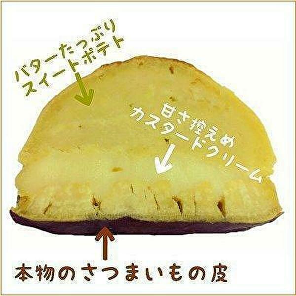 丹念に練り上げたさつま芋を本物のやきいもの皮の上にカスタードをしいた上で焼き上げた、その姿はまるでオムライス!