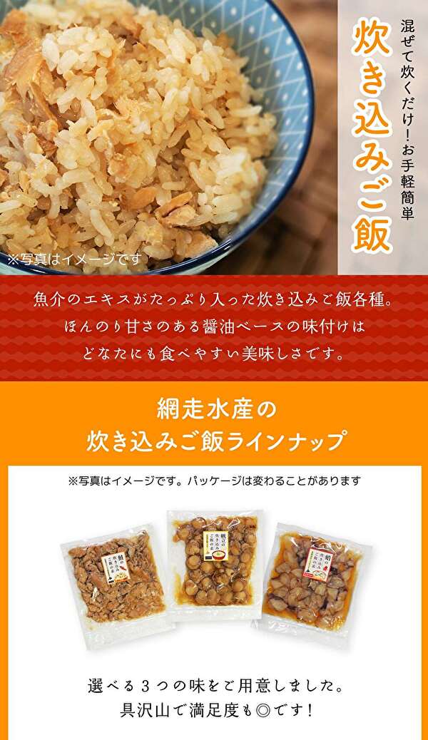 あっさり醤油仕立ての美味しい炊き込みご飯の素です。