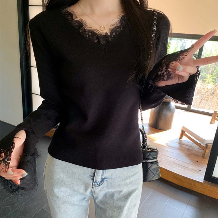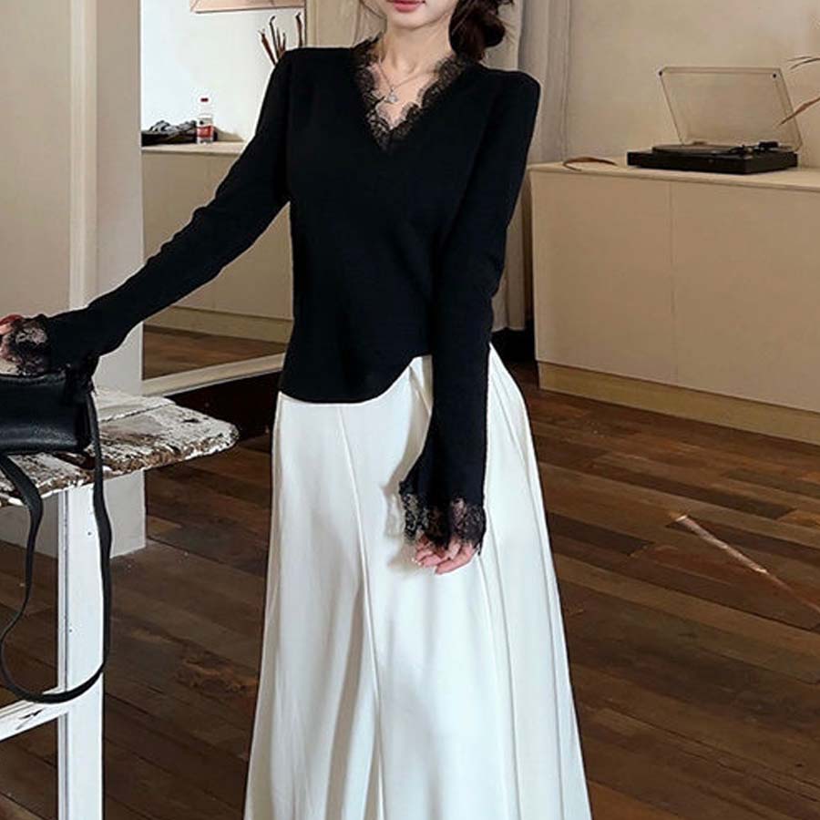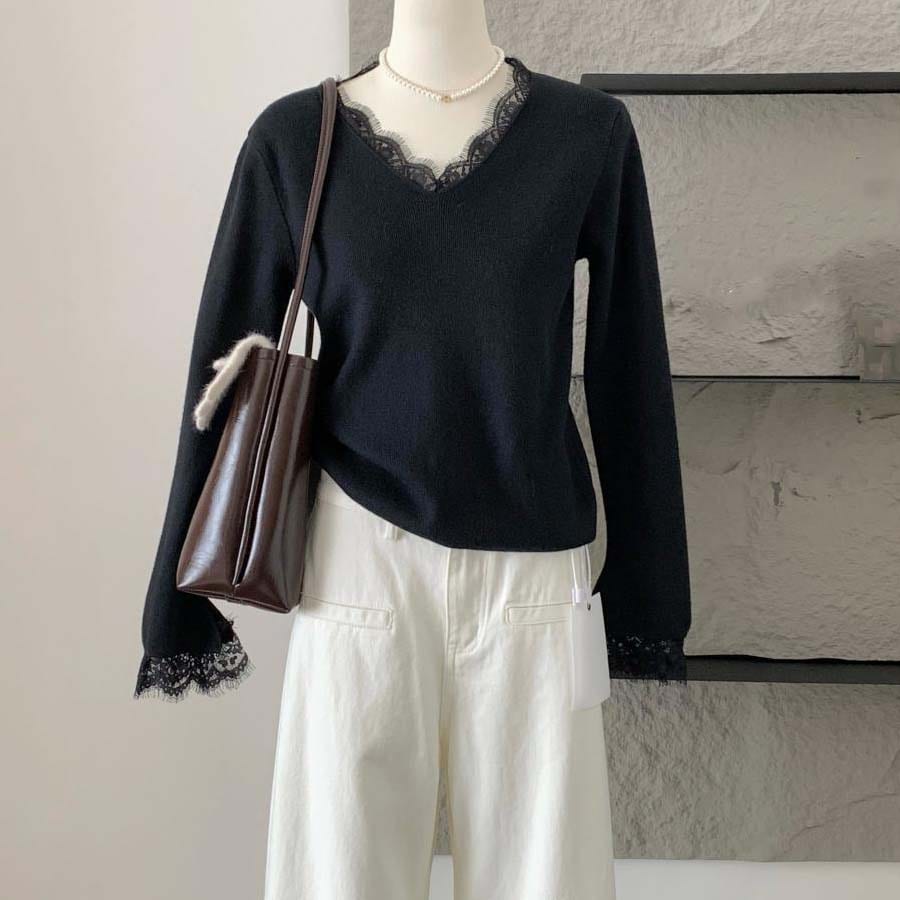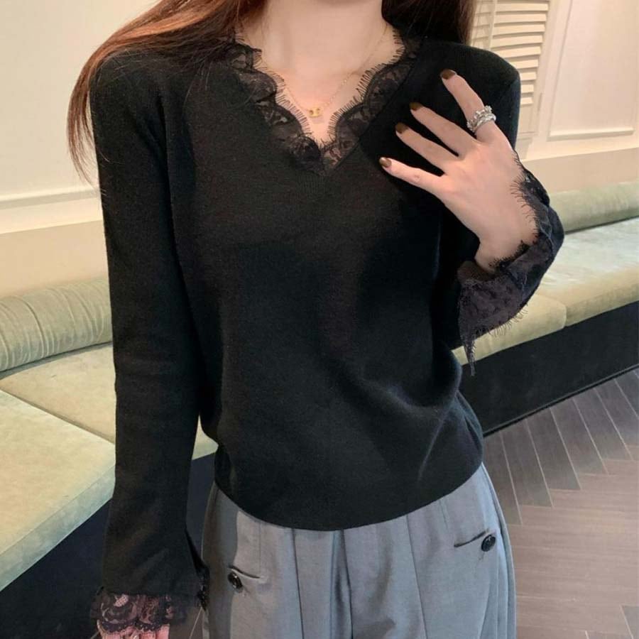 【ブラック】レース切り替えニットセーター | ニットやジャケットのインナーとしても大活躍してくれるアイテムです!