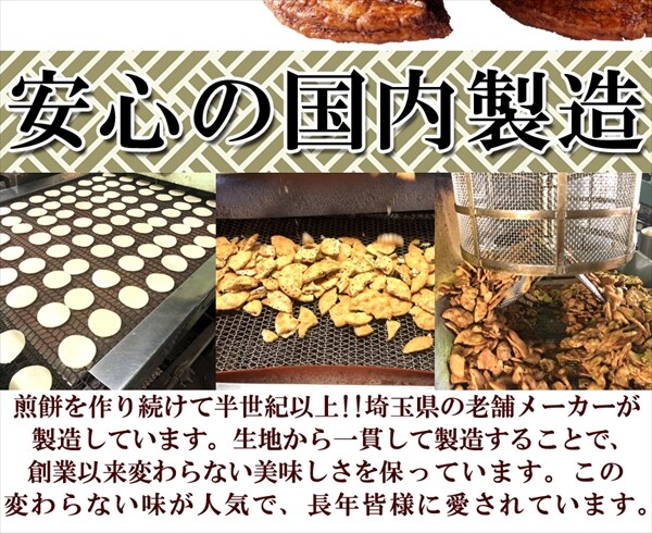 埼玉県の老舗メーカーが製造しています。生地から一貫して製造することで、創業以来変わらない美味しさを保っています。この変わらない味が人気で、長年皆様に愛されています。