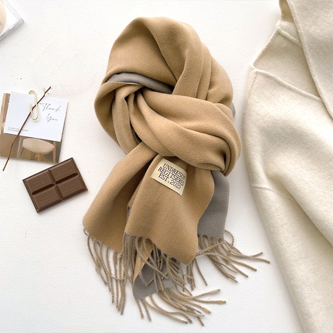 【ベージュ×グレー】カシミアタッチリバーシブル大判ストール【180×68cm】 | 肌ざわりと暖かさで選ばれる一枚。コートの上からふんわり羽織って、ぬくもりを一日中。