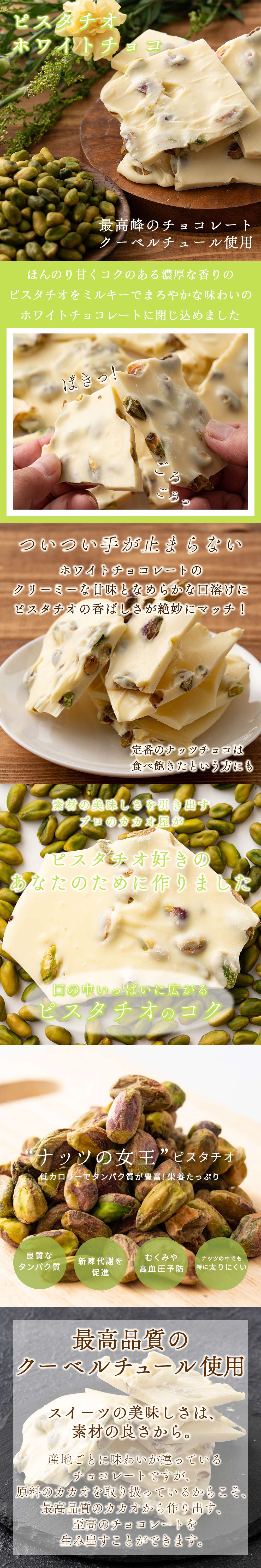 【720g(180g×4)】割れチョコ(ピスタチオホワイト)【メール便2個口配送】 | ホワイトチョコレートの濃厚な甘み♪なめらかな口溶けにピスタチオの香ばしさが絶妙!
