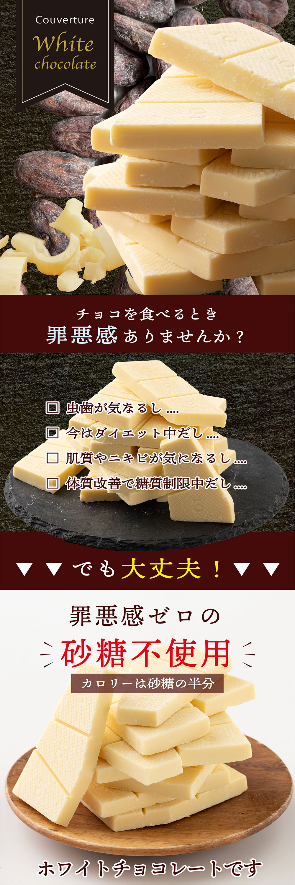 【2kg(500g×4袋)】割れチョコ(ノンシュガーホワイト) | ホワイトチョコのノンシュガー割れチョコです。罪悪感ないチョコをお楽しみいただけます。