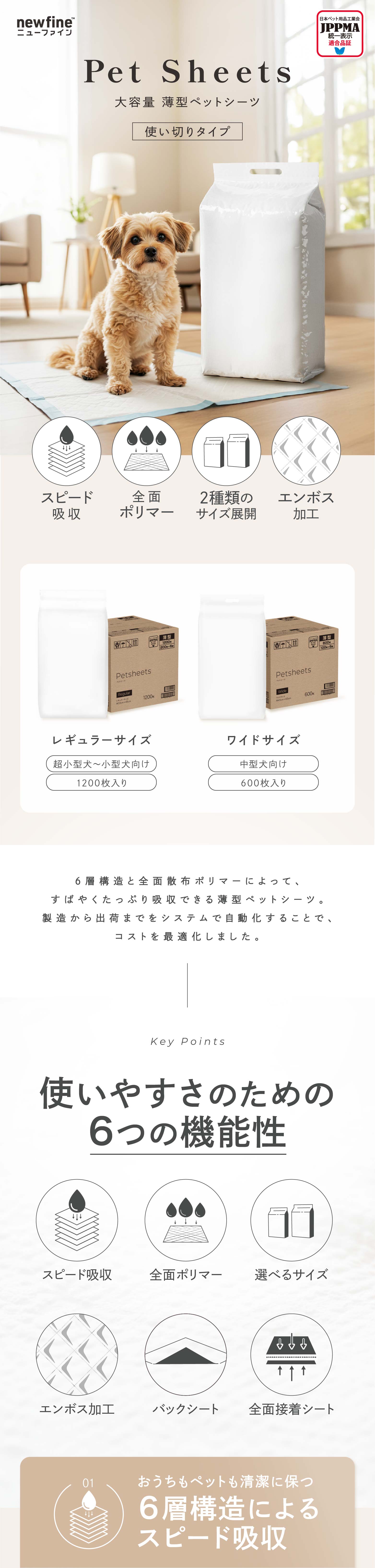 【1200枚】ペットシーツ 大容量 newfine ニューファイン レギュラー | 最短当日出荷!6層構造のシーツと高分子ポリマー搭載でスピード吸収を実現!