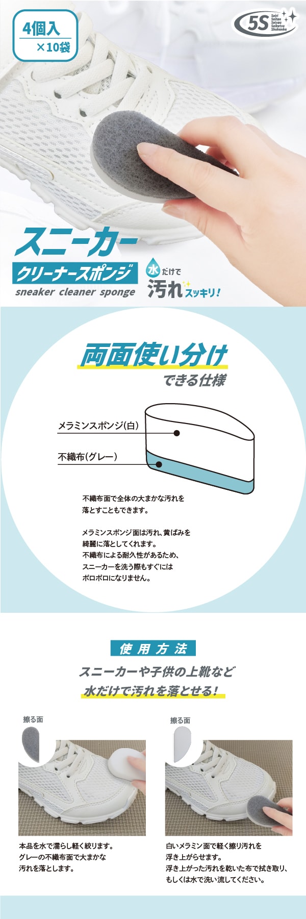 【4個入り×10袋】スニーカークリーナースポンジ | 水で擦るだけで汚れスッキリ お手軽ケアで驚きの仕上がり