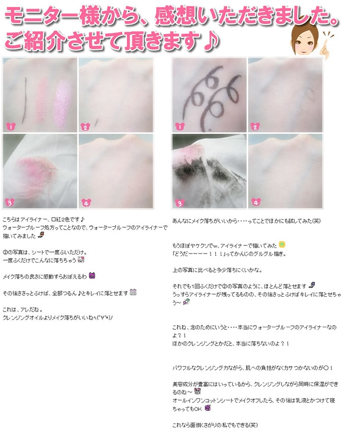 ●W洗顔不要で素早くオフ!さらにヒアルロン酸やプラセンタなど美容成分をたっぷり配合。スキンケアしながらメイク落としができるお肌に嬉しい1枚です。