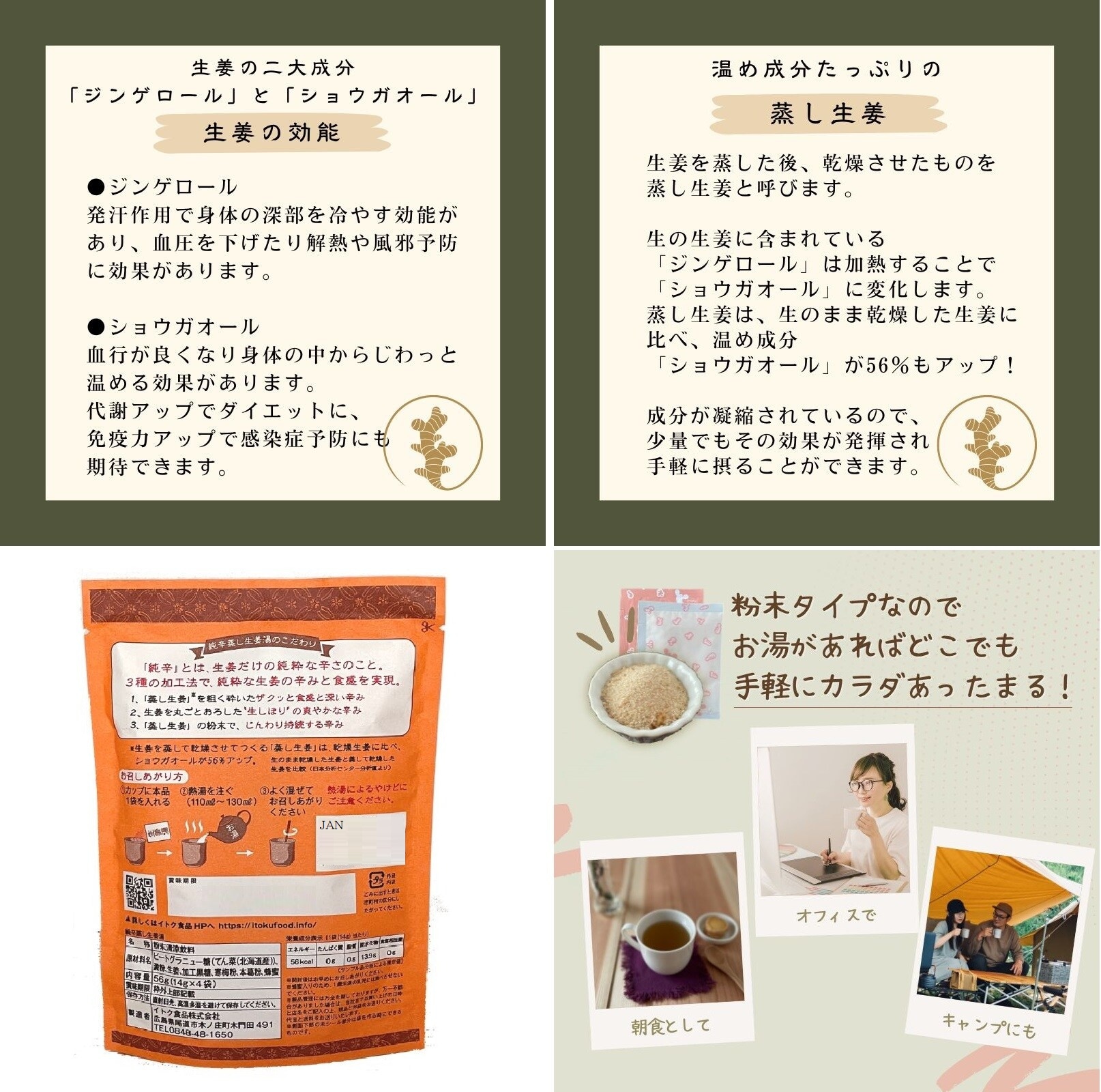 - 【(14g×4P)×5袋】純辛蒸し生姜湯/国産原料100% 生姜の純粋な辛さ。丸ごと荒おろし