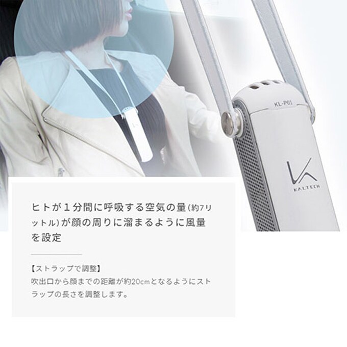 吹出口から顔までの距離が約20cmとなるようにストラップの長さを調整します。