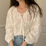 清楚可憐な立体感花柄刺繍ブラウス。