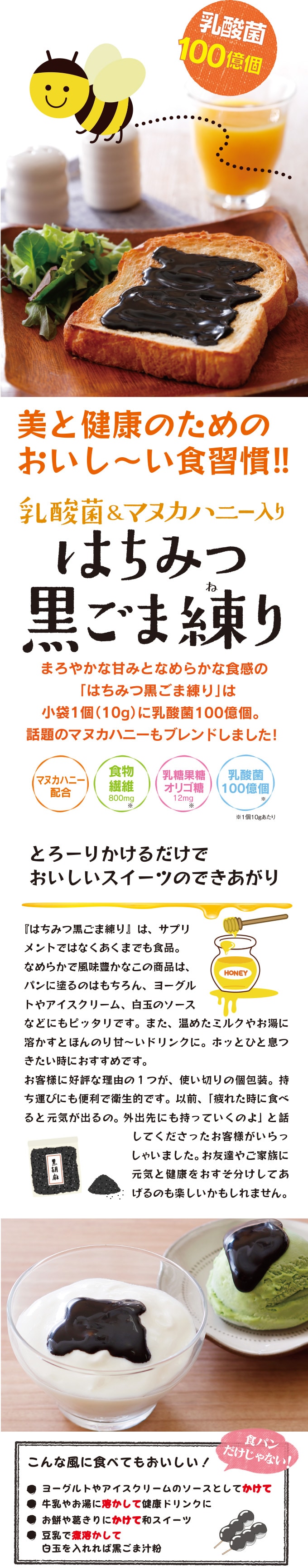 - 【10g×75包】乳酸菌&マヌカハニー入り はちみつ黒ごま練り