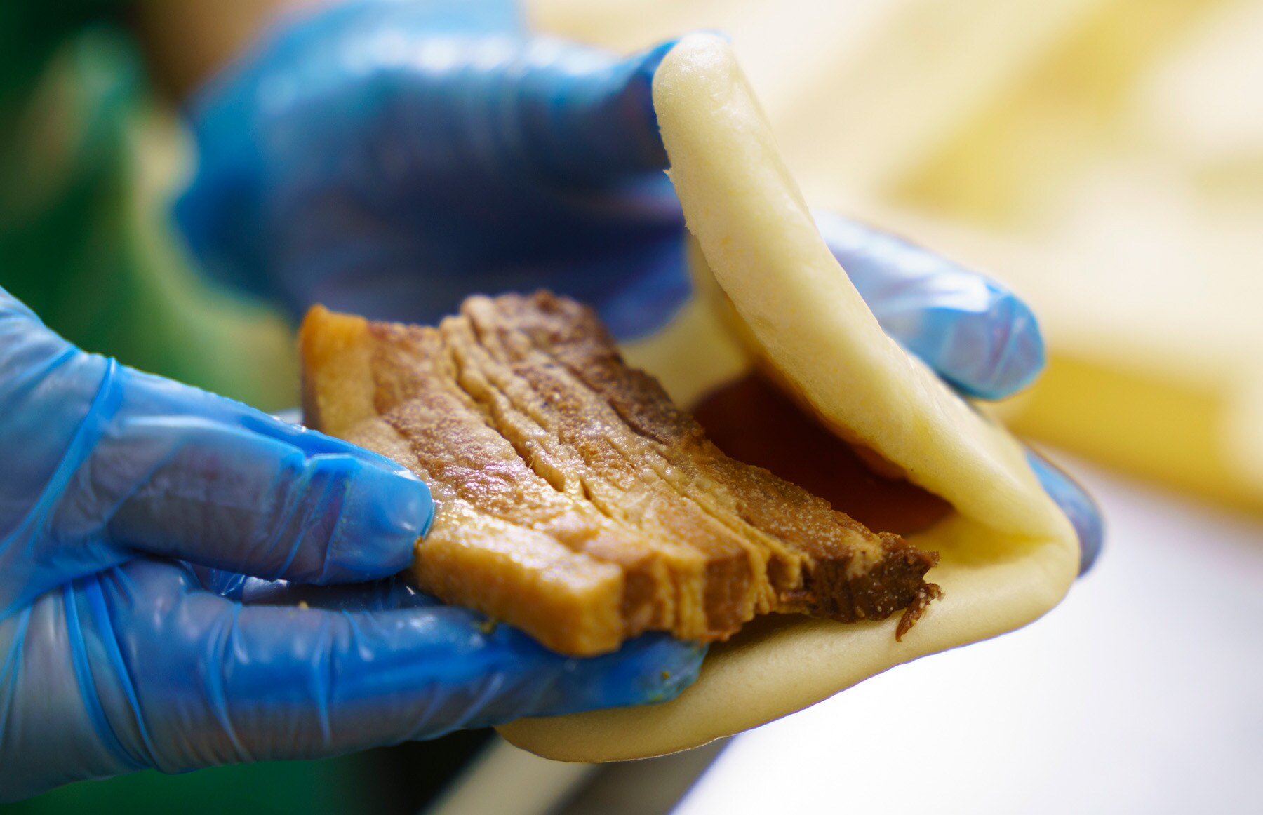 古より中国には肉などを万頭に挟んで食す文化があります。中でも長崎中華街では、トンポーロー(豚の角煮)を万頭とともに提供する料理が人気で、コース料理や卓袱料理の定番となっています。それを食べやすくしたのが「かくにまん」です。