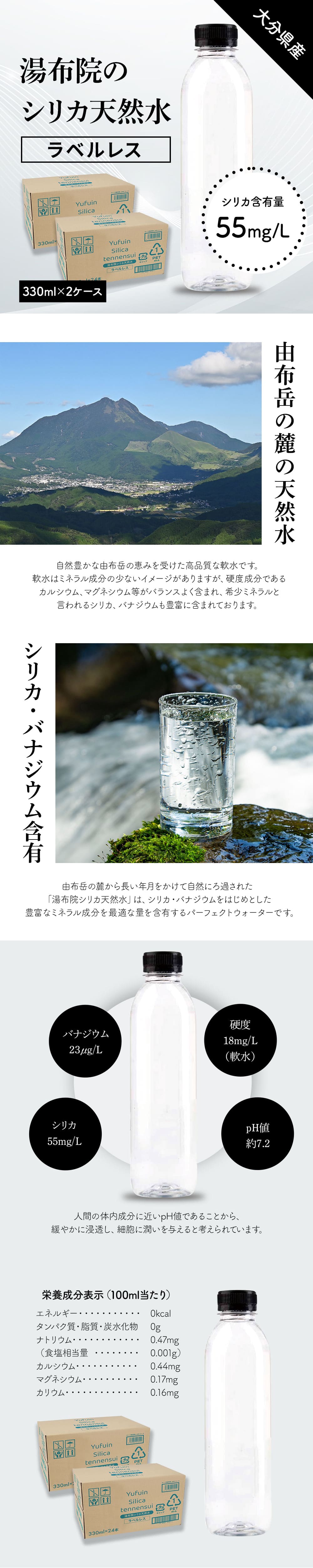 【330ml×48本(軟水)】大分県産 湯布院シリカ天然水ラベルレス | 希少ミネラルと言われるシリカ、バナジウムも豊富に含まれております。