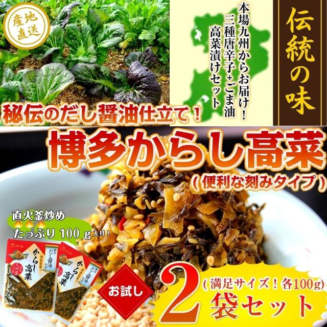 【計200g(100g×2袋)】辛子高菜 だし醤油仕立て からし高菜漬 お試し 九州特産 漬け物 | 秘伝のだし醤油の旨味としっとり感がクセになる♪博多名物「からし高菜(100g)」×2袋!