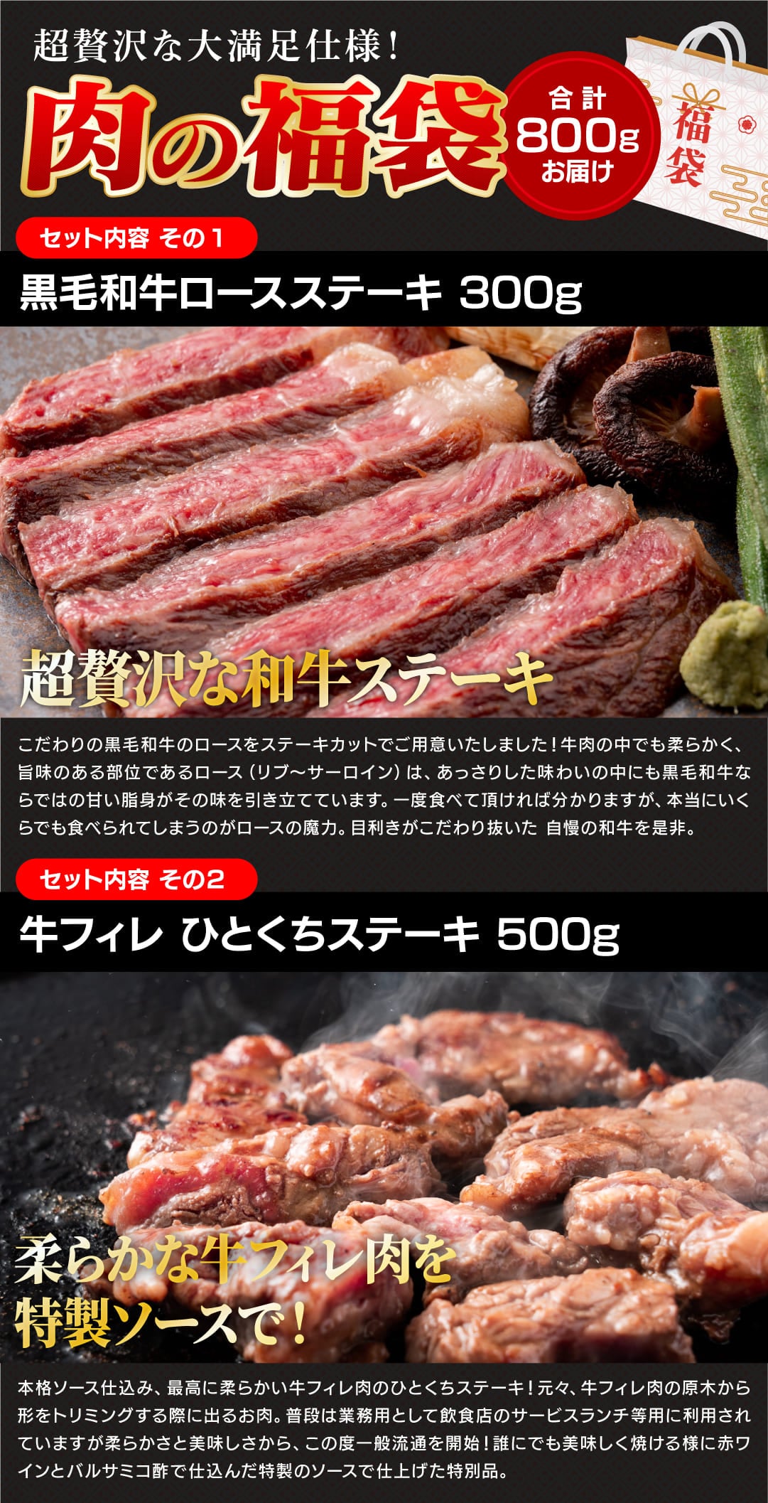 - 【福袋800g】牛フィレ&黒毛和牛ロースステーキ