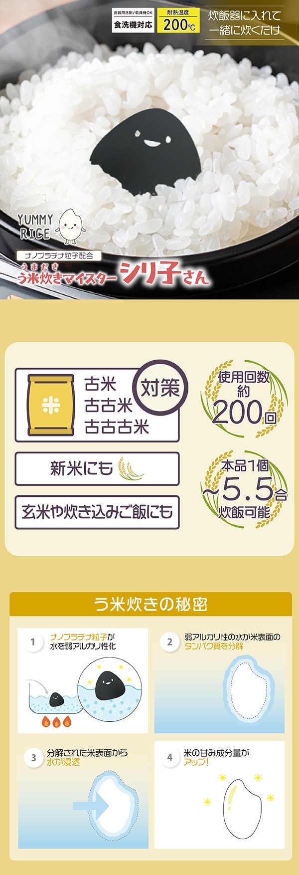 ・本品の使用に関しては、お手持ちの炊器の取扱説明書に記載の禁止、注意事項に従ってください。