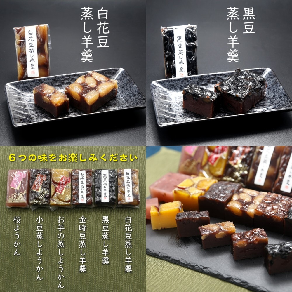 - 若山商店ようかん6種食べ比べセット/お芋、桜、小豆、金時豆、 白花豆、黒豆(各1個)