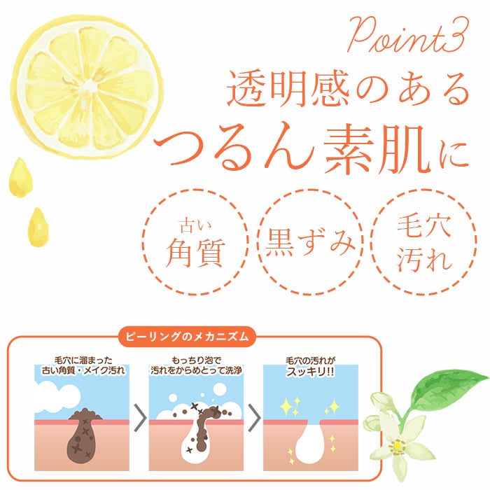 *古い角質・黒ずみ・毛穴汚れをメレンゲのようなもっちり濃密泡でやさしく洗い流します。