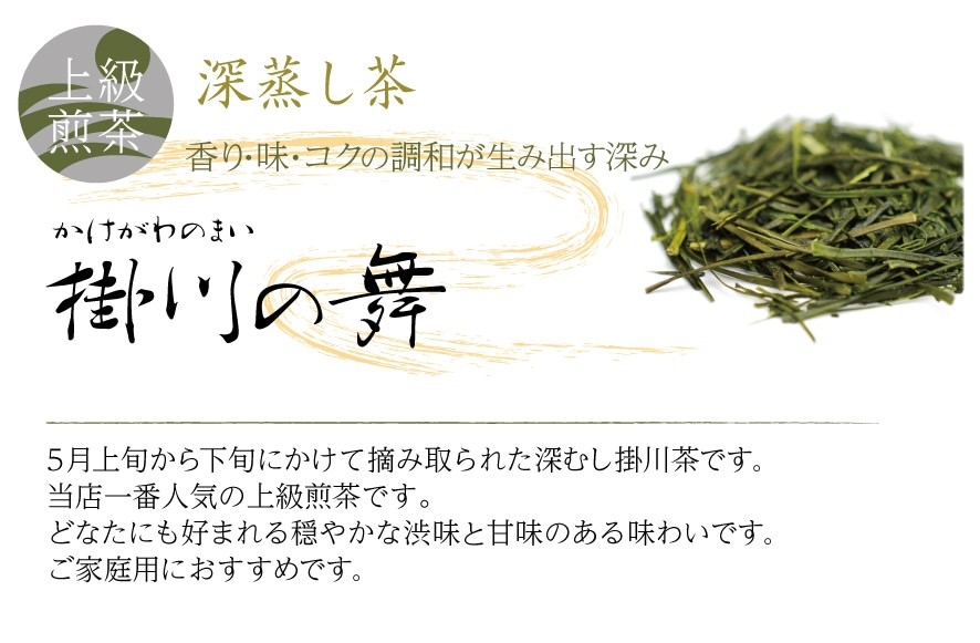 5月上旬から下旬にかけて摘み取られた深むし掛川茶です。
