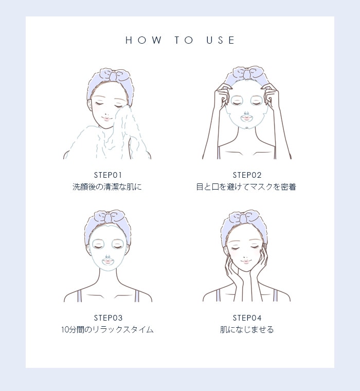 ・メイクを落とし、W洗顔をした後の清潔なお肌にマスクをフィットさせて下さい。(目と口の部分を必ず開けるように貼って下さい)