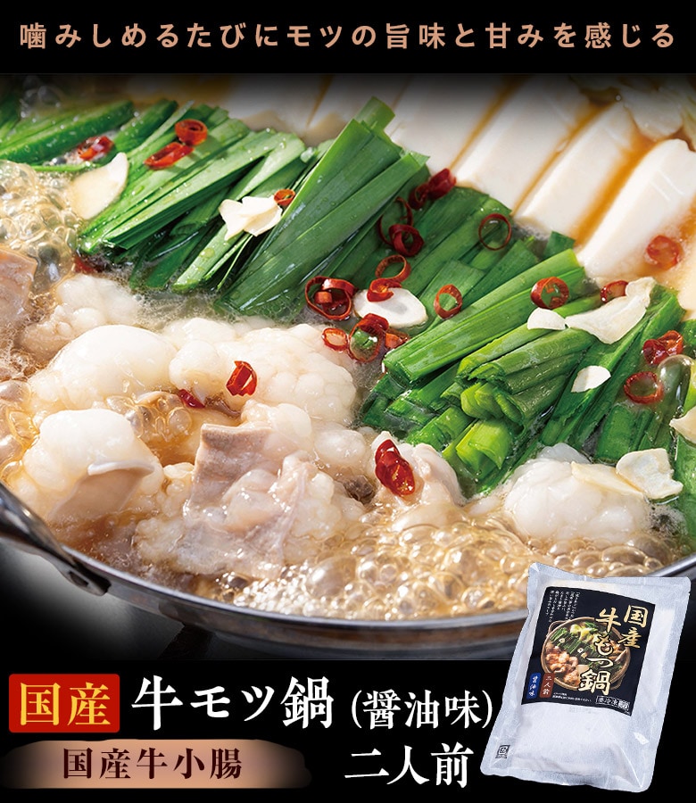 【2人前】国産牛モツ鍋(醤油味) | プリプリ食感で脂のりのよい国産牛の小腸のみ使用