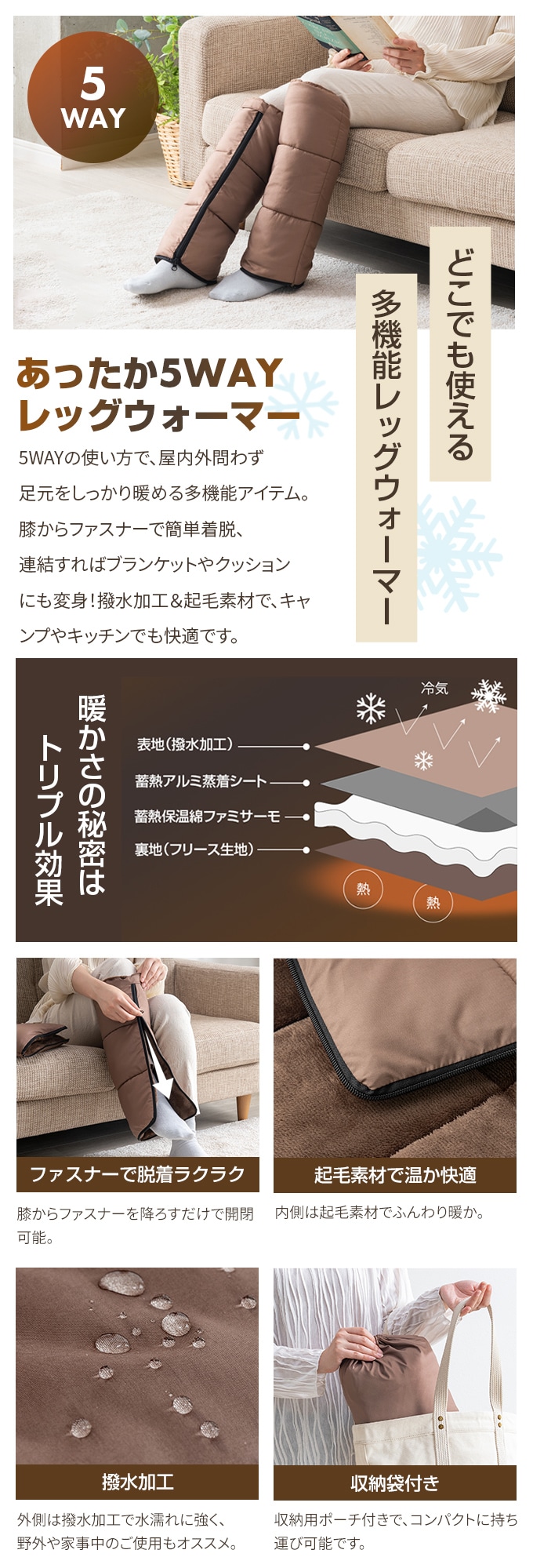 あったか5WAYレッグウォーマー | 冷え性の方に!蓄熱素材でじんわり暖かレッグウォーマー