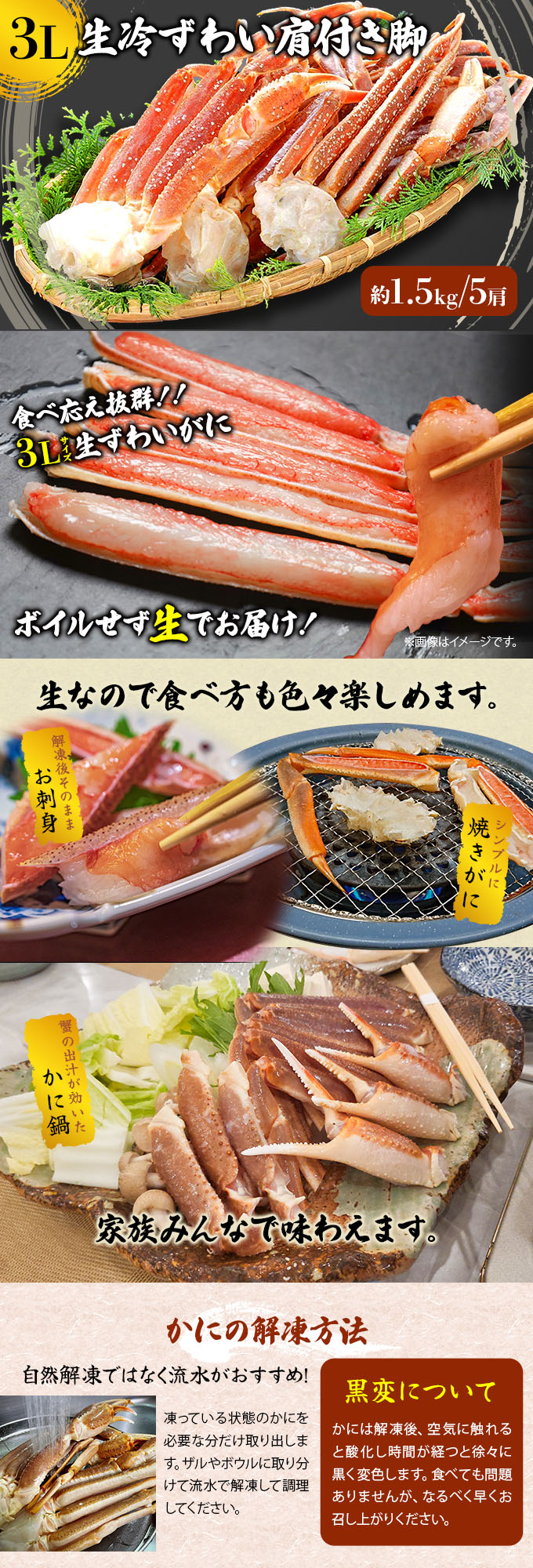 【約1.5kg】3L生冷ズワイ肩付き脚 | 甘みや旨みが強く、殻から濃厚なダシが出ているため カニ鍋にも最適!