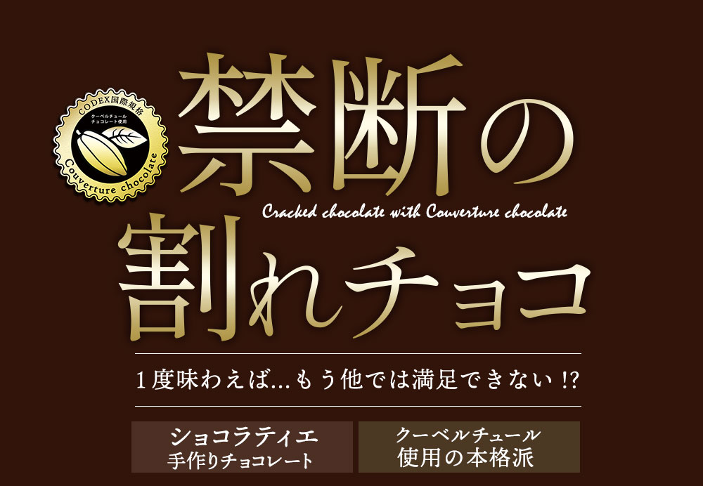 高級チョコクーベルチュール使用の滑らかで濃厚な口溶けの割れチョコです。本格チョコの味をお召し上がりください!