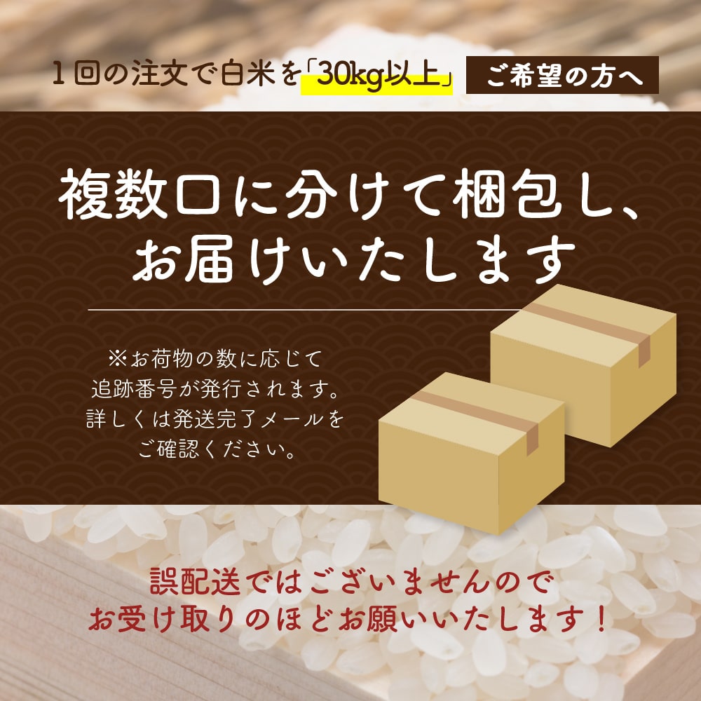 ※お米に賞味期限はありませんが、徐々に劣化(酸化→古米化→食味低下)します。お受け取り後はできるだけお早めに(涼しいところに保管して夏場で約2週間ぐらいで)お召し上がりください。