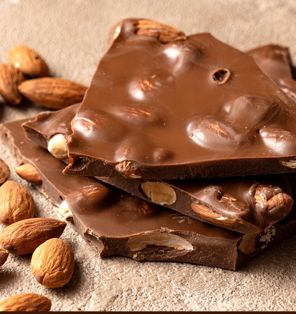 【200g】割れチョコ ミルク アーモンド | 本物のクーベルチュールならではの上品な甘さ、まさに"ぜいたく"な逸品!!