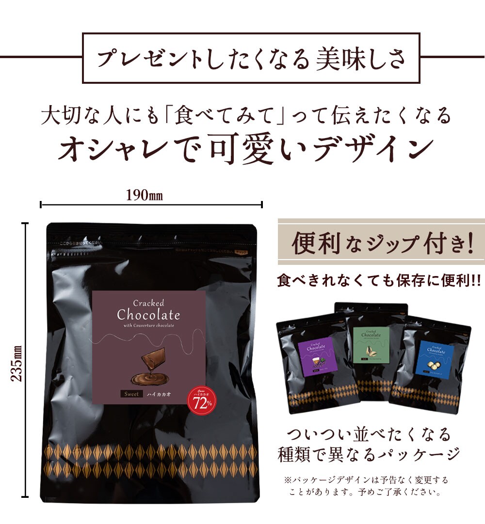 高級チョコクーベルチュール使用の滑らかで濃厚な口溶けの割れチョコです。本格チョコの味をお召し上がりください!