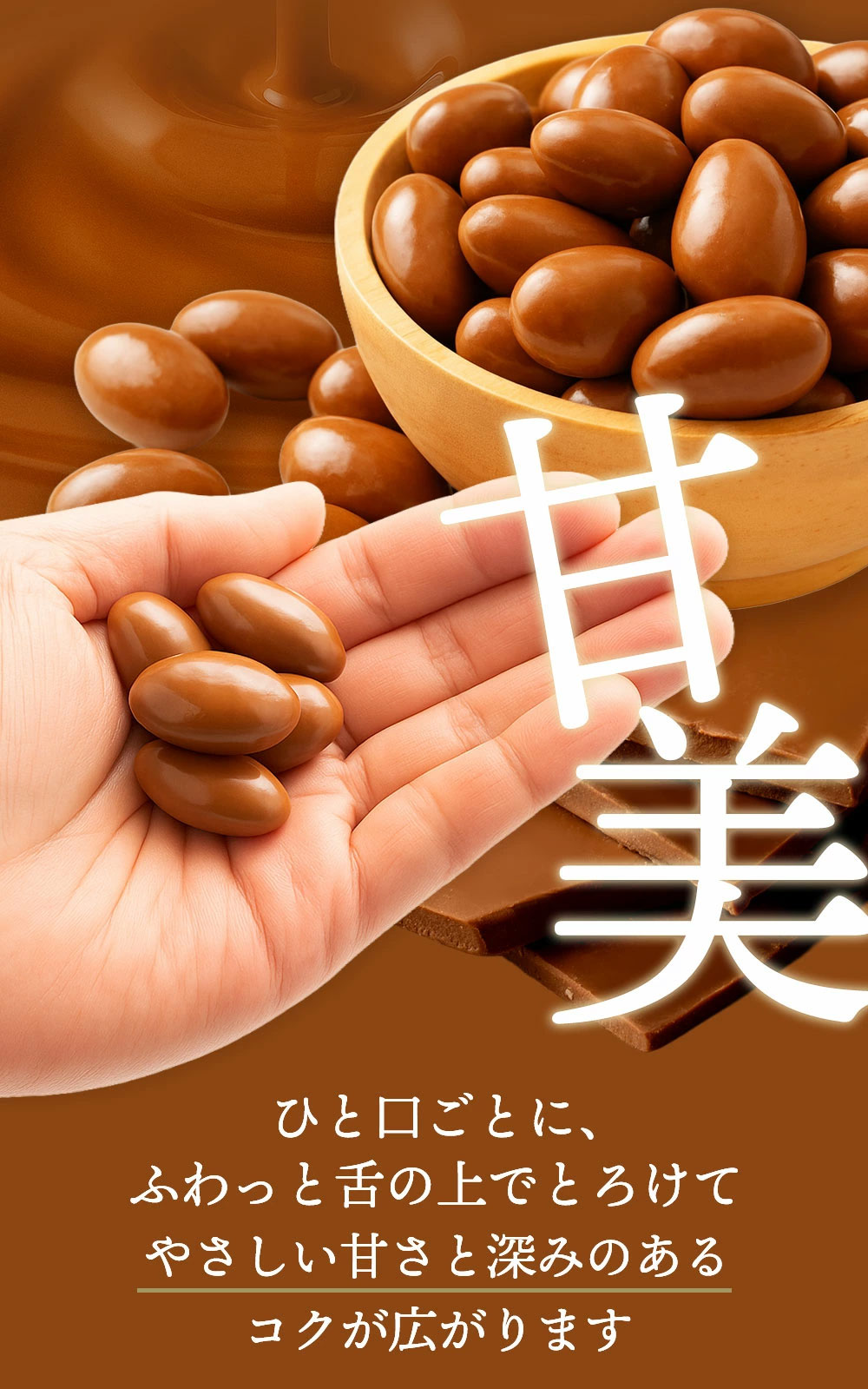 ・原材料/材質/素材:アーモンド(アメリカ)、砂糖、ココアバター、全粉乳、カカオマス、水飴/光沢剤、乳化剤、香料、(一部にアーモンド・乳成分・大豆を含む