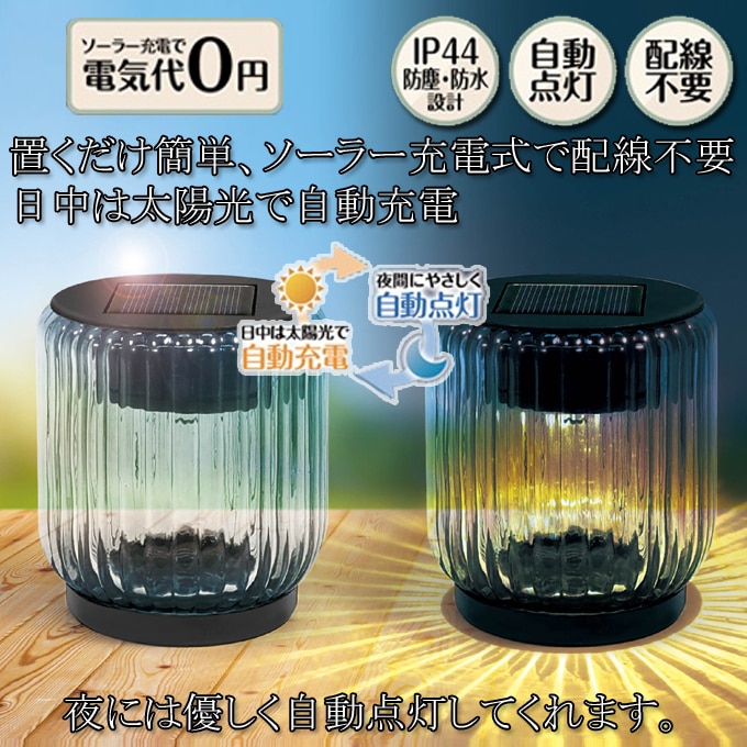 ソーラー充電ガーデンガラスライト 2個セット グレー | 置くだけ簡単、夜のお庭を幻想の輝きで彩ります。