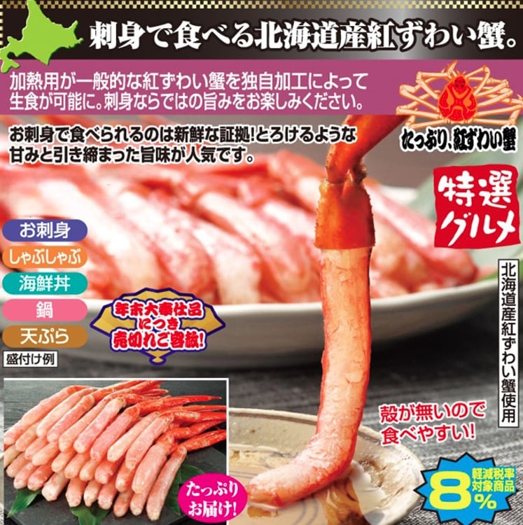 【1.6kg】北海道産 お刺身紅ずわい蟹脚むき身 | 刺身で食べられる!北海道産紅ずわい蟹。