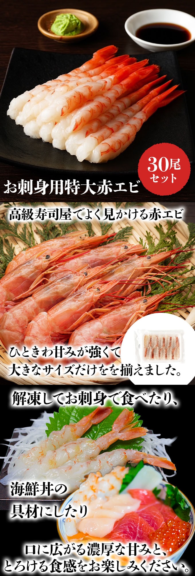 【30尾】お刺身用特大赤エビ | たっぷり30尾入りだから、家族みんなで楽しめる!