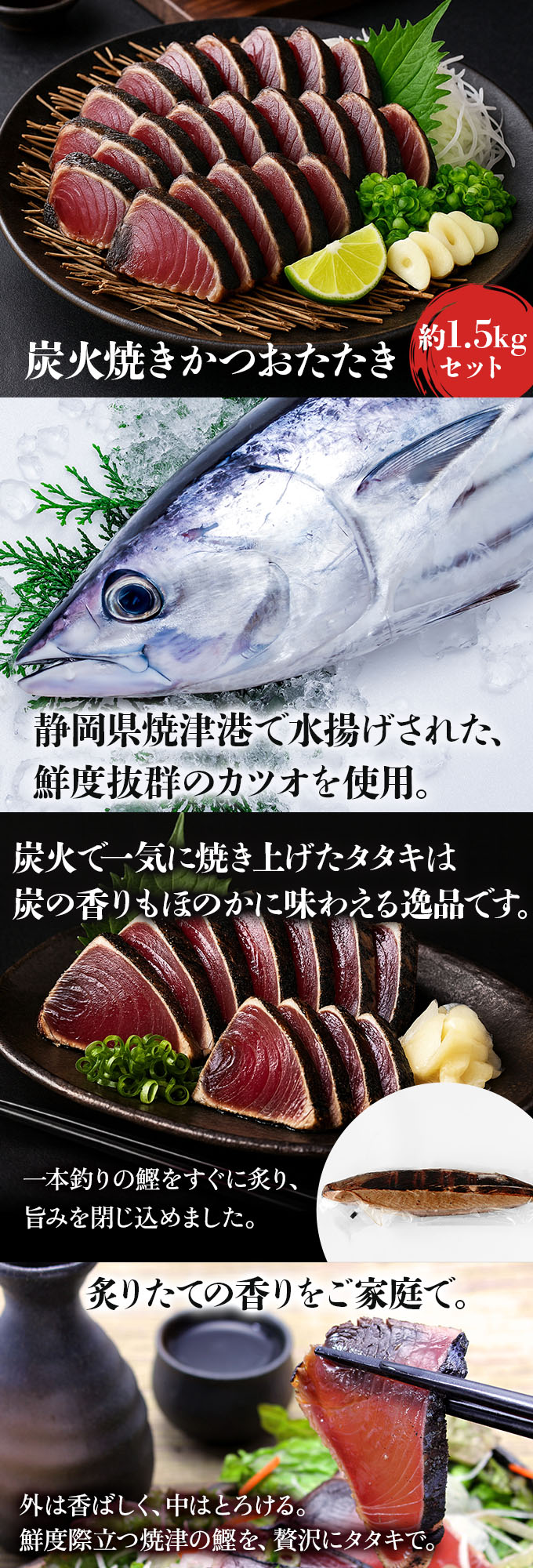 【約1.5kg】炭火焼きカツオたたき | 炭火で一気に焼き上げたタタキは炭の香りもほのかに味わえる逸品です。