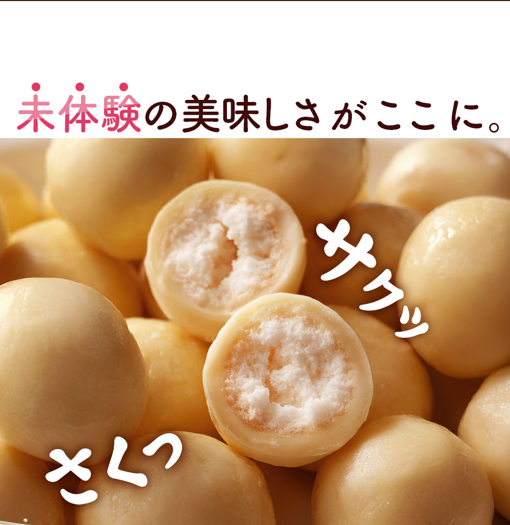 サクサクとした一口サイズのお菓子を濃厚なホワイトチョコで包み込みました。