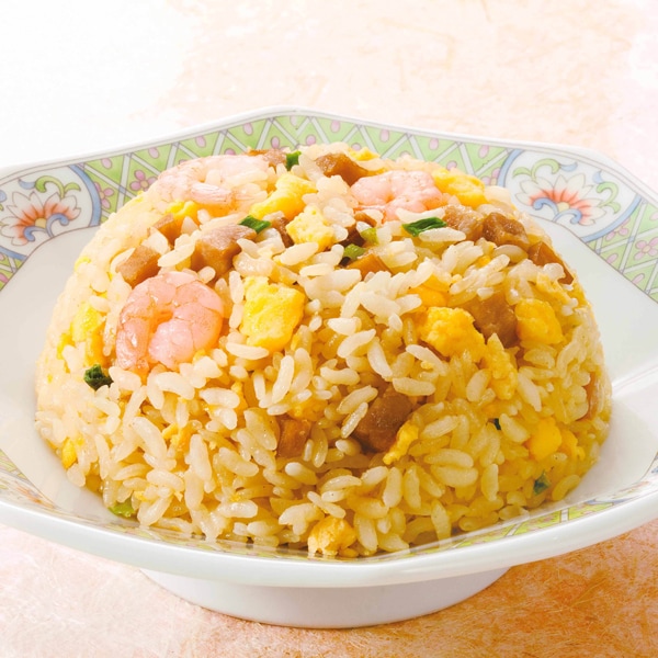 中華料理の名店「赤坂四川飯店」が監修した本格中華シリーズのふっくら五目炒飯です。エビ、焼豚、ねぎ、しいたけ、卵などの具だくさんな炒飯です。味付けは、四川飯店こだわりのポーク、チキン、野菜を凝縮したオリジナル中華スープの素でコクのある味付けをし、パラパラに、香ばしく焼き上げています。蒸し炒飯製法なので冷めてもふっくらご飯を実現しています。