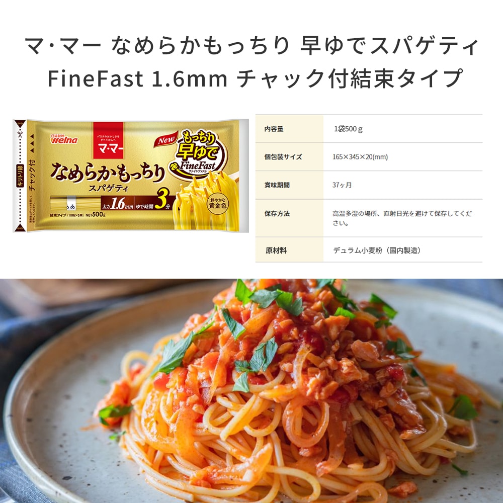 【計4kg/500g×8袋】日清ウェルナ マ・マ― なめらかもっちり早ゆでスパゲッティ 1.6mm | なめらかもっちり 早ゆでスパゲティ
