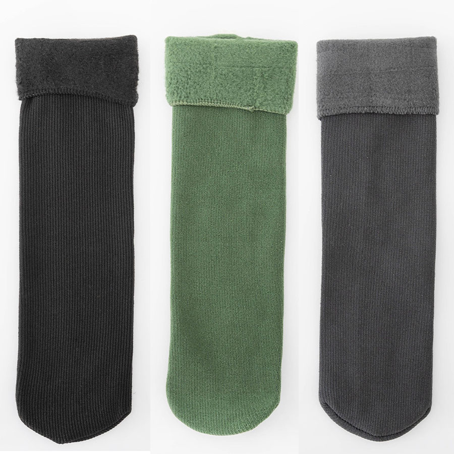 - 【3足セット】裏起毛ソックス 靴下 冷え取り靴下(ブラック+グリーン+グレー)