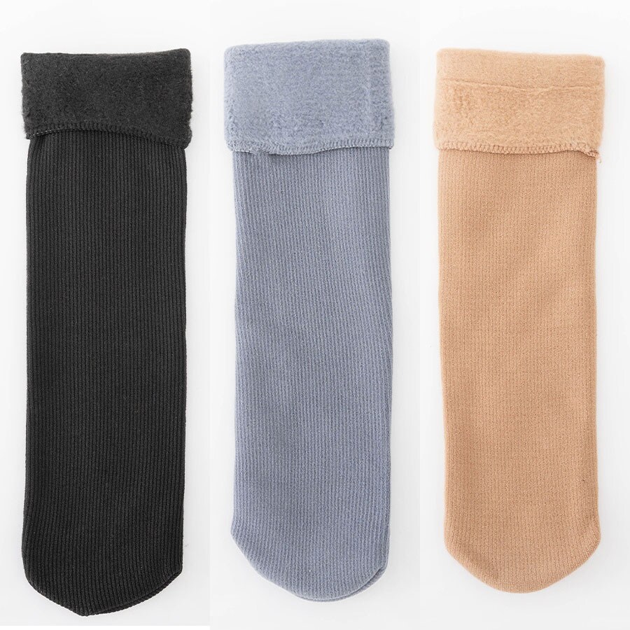 - 【3足セット】裏起毛ソックス 靴下 冷え取り靴下(ブラック+ライトグレー+カーキ)