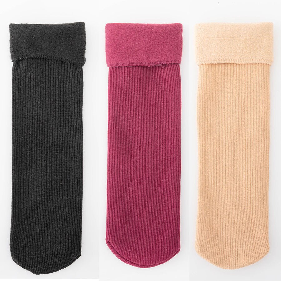 - 【3足セット】裏起毛ソックス 靴下 冷え取り靴下(ブラック+ホットピンク+ベージュ)