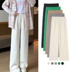 - 【ベージュ】裏起毛 ウエストゴムワイドパンツ