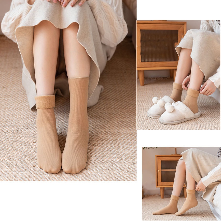 - 【3足セット】裏起毛ソックス 靴下 冷え取り靴下(B:グレー/ライトグレー/ベージュ)