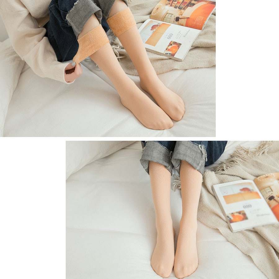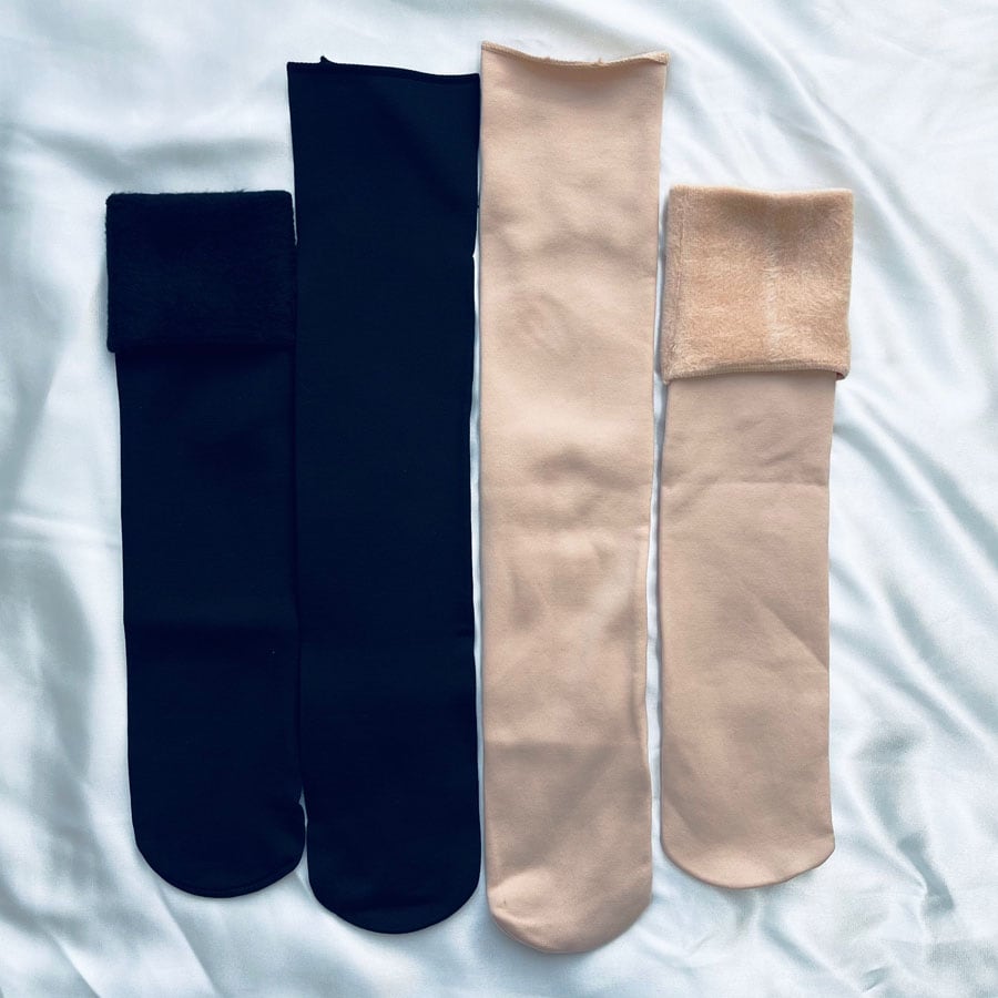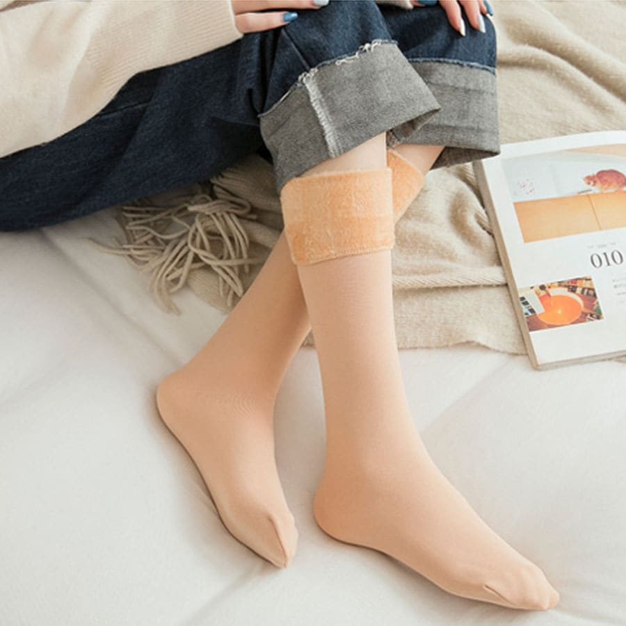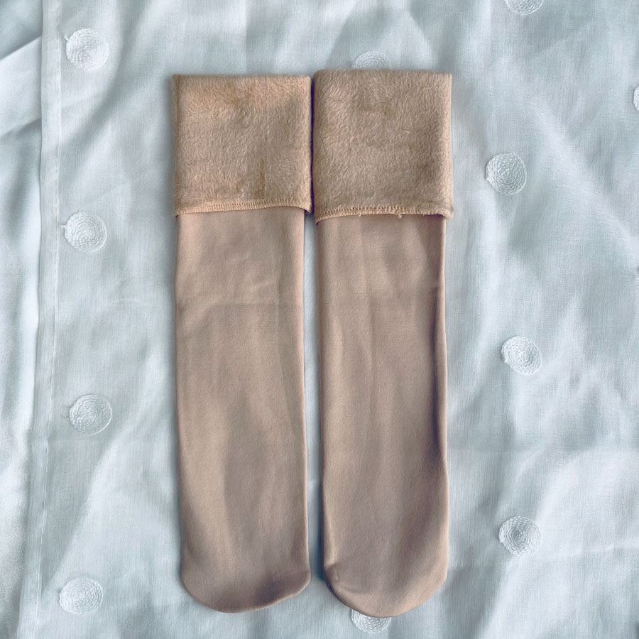 - 【ベージュ】裏起毛ハイソックス 靴下 冷え取り(ひざ下丈)
