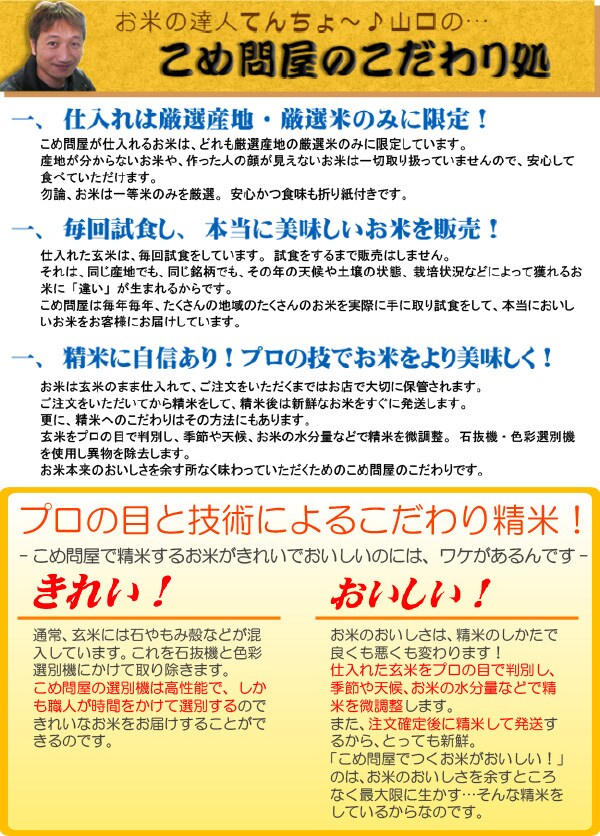 ※お米に賞味期限はありませんが、徐々に劣化(酸化→古米化→食味低下)します。お受け取り後はできるだけお早めに(涼しいところに保管して夏場で約2週間ぐらいで)お召し上がりください。
