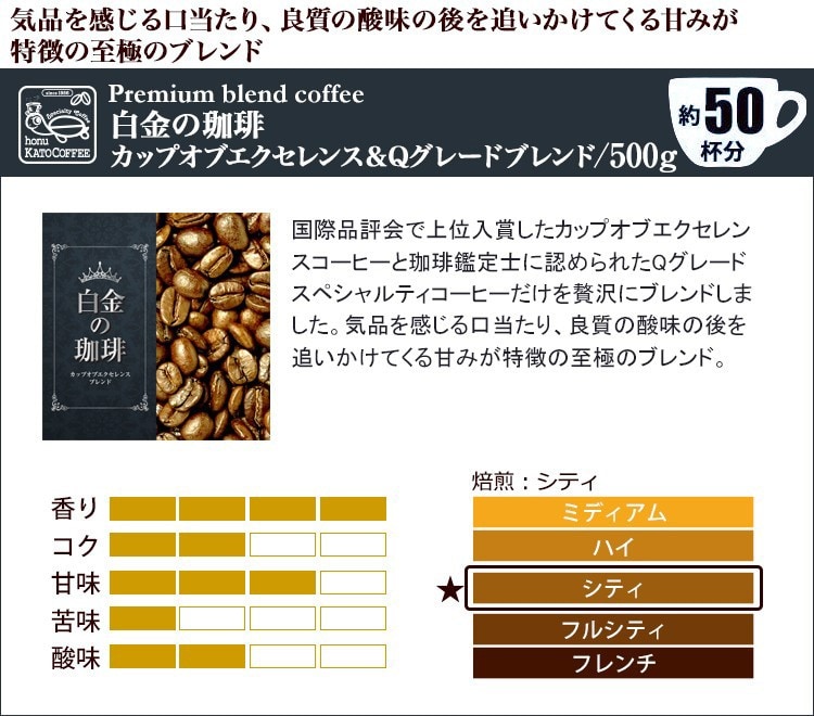 ■白金の珈琲・カップオブエクセレンス&Qグレードブレンド/500g入袋