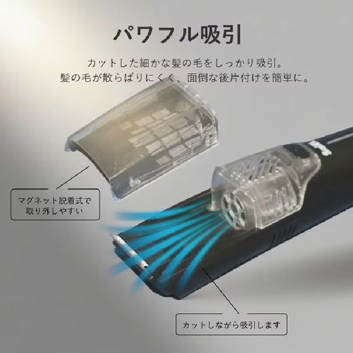 電動吸引バリカン ブラック SLI-HC03-WH | 刈った細かい髪の毛をスッと吸引/髪の毛がほとんど散らからない